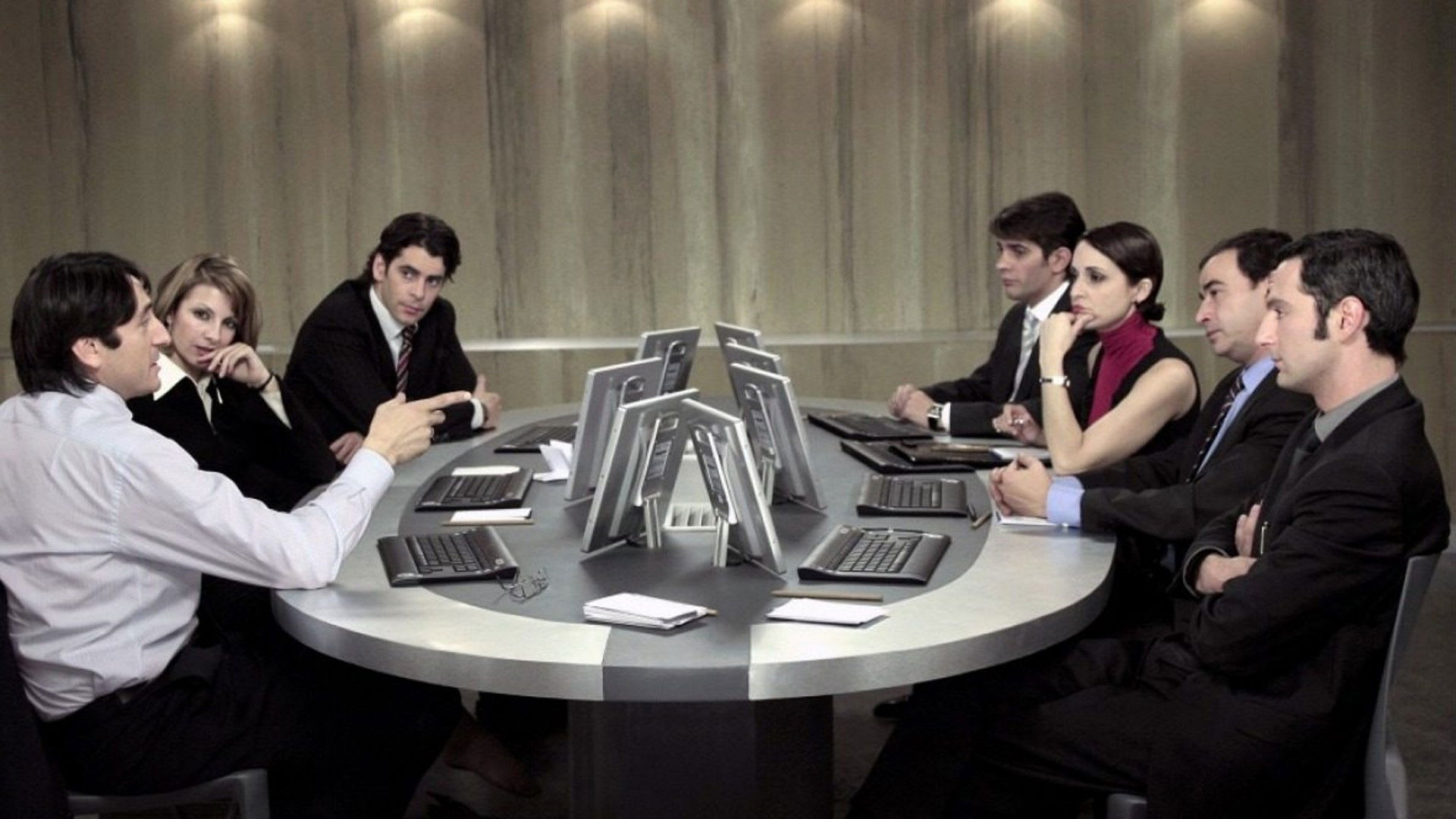 Siete profesionales compiten por un alto cargo ejecutivo en una multinacional. Encerrados en una sala de conferencias de un rascacielos madrileño, son sometidos al método Grönholm: un sistema de selección grupal donde no hay entrevistadores visibles y las instrucciones llegan a través de pantallas. Las pruebas psicológicas los obligan a enfrentarse y eliminarse mutuamente. A medida que la tensión escala, las máscaras caen y cada uno debe decidir hasta dónde está dispuesto a llegar.